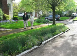 The Lower Olentangy Urban Arboretum tree planting initiative, various rain barrel programs and the revegetation of the ravines will all go a long way toward enhancing Clintonville’s neighborhood aesthetic and benefitting the environment. However, more can be done to effectively treat the stormwater that is generated by our neighborhood roads, sidewalks, homes, parking lots and other impervious surfaces. While some homeowners and neighborhood organizations have installed rain gardens, a more comprehensive approach could be taken to effectively manage, treat, and infiltrate stormwater in our neighborhood before it enters the combined storm sewer and ravines.