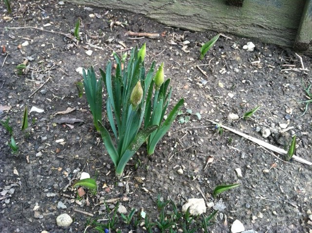 I also saw that some of our daffodils have buds on them while there are little green wedges pushing up from the tulips I planted last fall. My grandfather always had daffodils, tulips, hyacinths, and peonies growing in his backyard. In spring, we’d