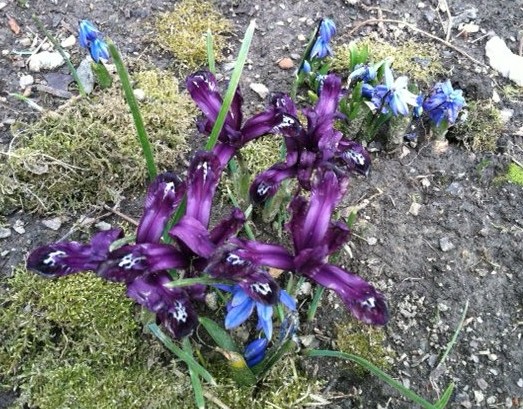 But there are signs that something underground is waking up. There are buds on a few of our trees. And we have beautiful irises in the back yard along with another
