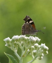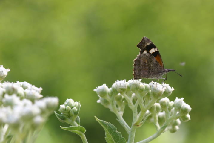 According to the Ohio Department of Natural Resources, the American Snout is the only butterfly species that was originally described from Ohio. In other words, the first butterfly of this species ever found was in Ohio, in 1852, by Jared P. Kirkland, a naturalist from Cleveland. The larvae feed on hackberry; this butterfly was feeding on the wild quinine in our yard and seemed quite content to get all of his (or her) nectar from that source.