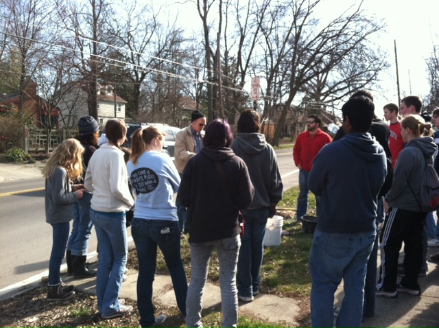 Big news! Most of the tree markers on both the Glen Echo and the Indianola Tree Walks are in. A HUGE thank you to the OSU students who, once again, showed up in force to help out (and to Laura for securing them). And a shout out to our friends from Indianola Informal K-8 who carted off the leftover soil – and more importantly, got all the markers in place yesterday afternoon. And thanks to Mike for contacting all those homeowners who have a tree on their private property so we can place their markers. Jason, our resident engineer, helped make sure the students all had proper training in how to put the markers in. I’m certain a slide rule was used. :-) Thanks so much to all for braving the less than spring-like temperatures to get all these markers in place.