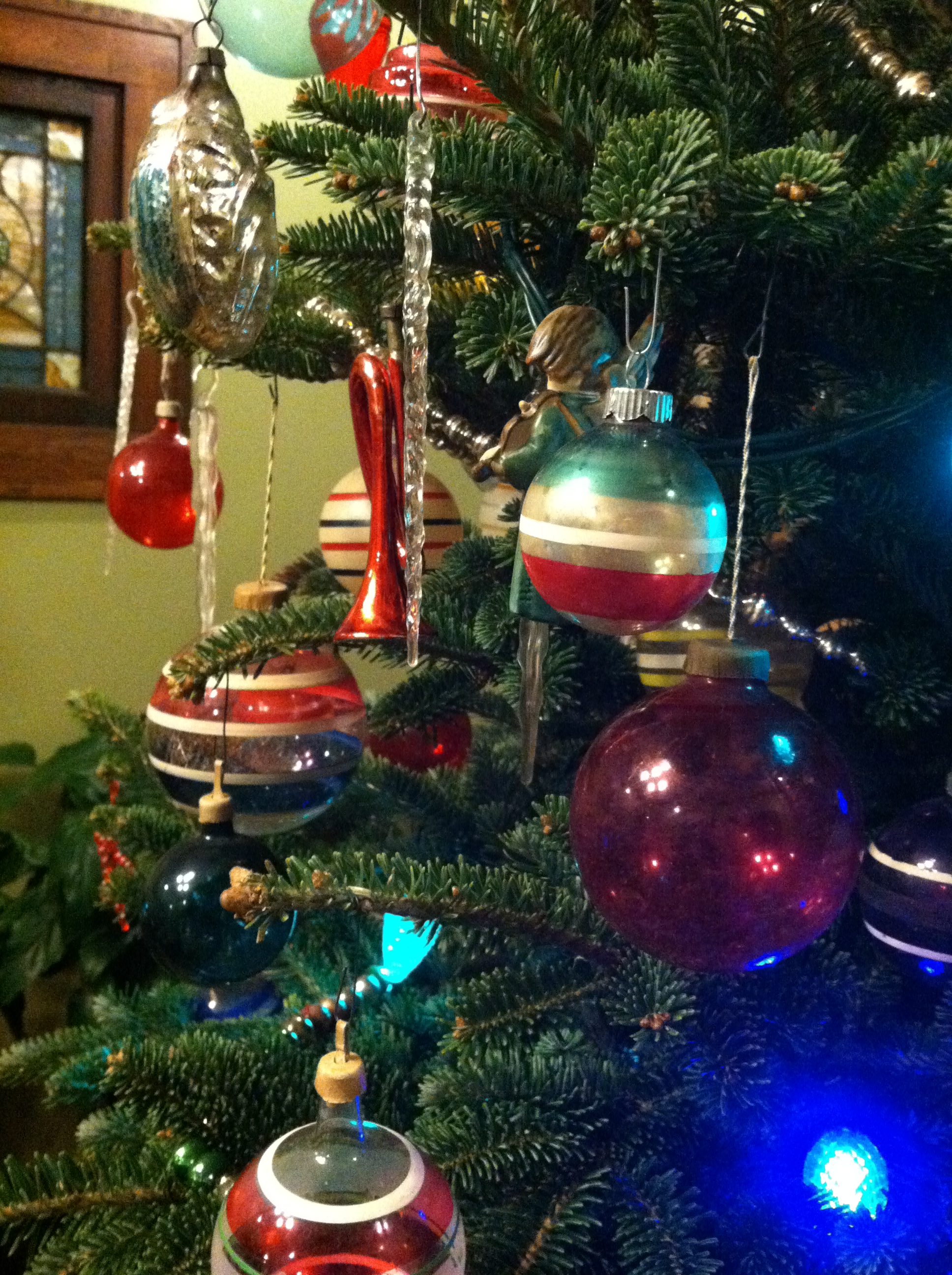 This past week has been busy decorating the house and tree for the holidays. I’m always on the lookout for more World War II paper cap ornaments, but they are getting harder to find; Pete kids me that I’ve managed to buy every one in Central Ohio and Michigan. This year’s tree trimming was especially poignant as it was December 7th, and I was decorating with ornaments that were made during the Second World War, with “I’ll Be Home for Christmas” playing on the stereo, a song that was released in October, 1943. Here’s the end result.