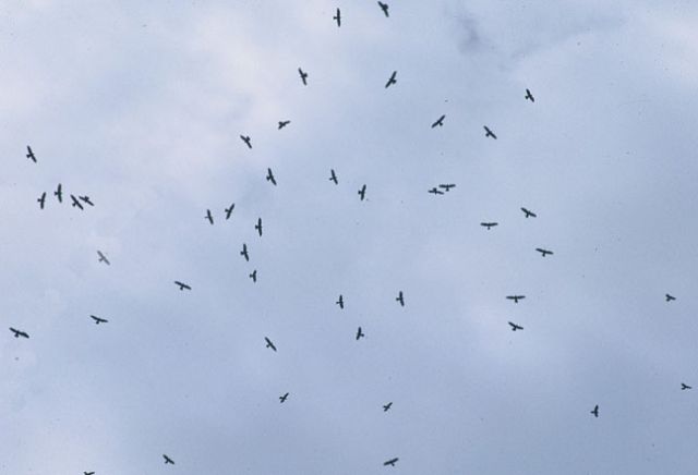 Did anyone else see all the migrating buzzards this afternoon over Clintonville? I was outside, putting up the Halloween lights, when I looked up and saw a group of large birds flying overhead. It was really beautiful to watch: a real buzzard ballet! The buzzards were circling and spiraling up and down. Then they went off to the south. I wasn’t sure what the birds were at first because I didn’t see the “fingers” on the wingtips, but Pete said they were buzzards without the wings fully extended.