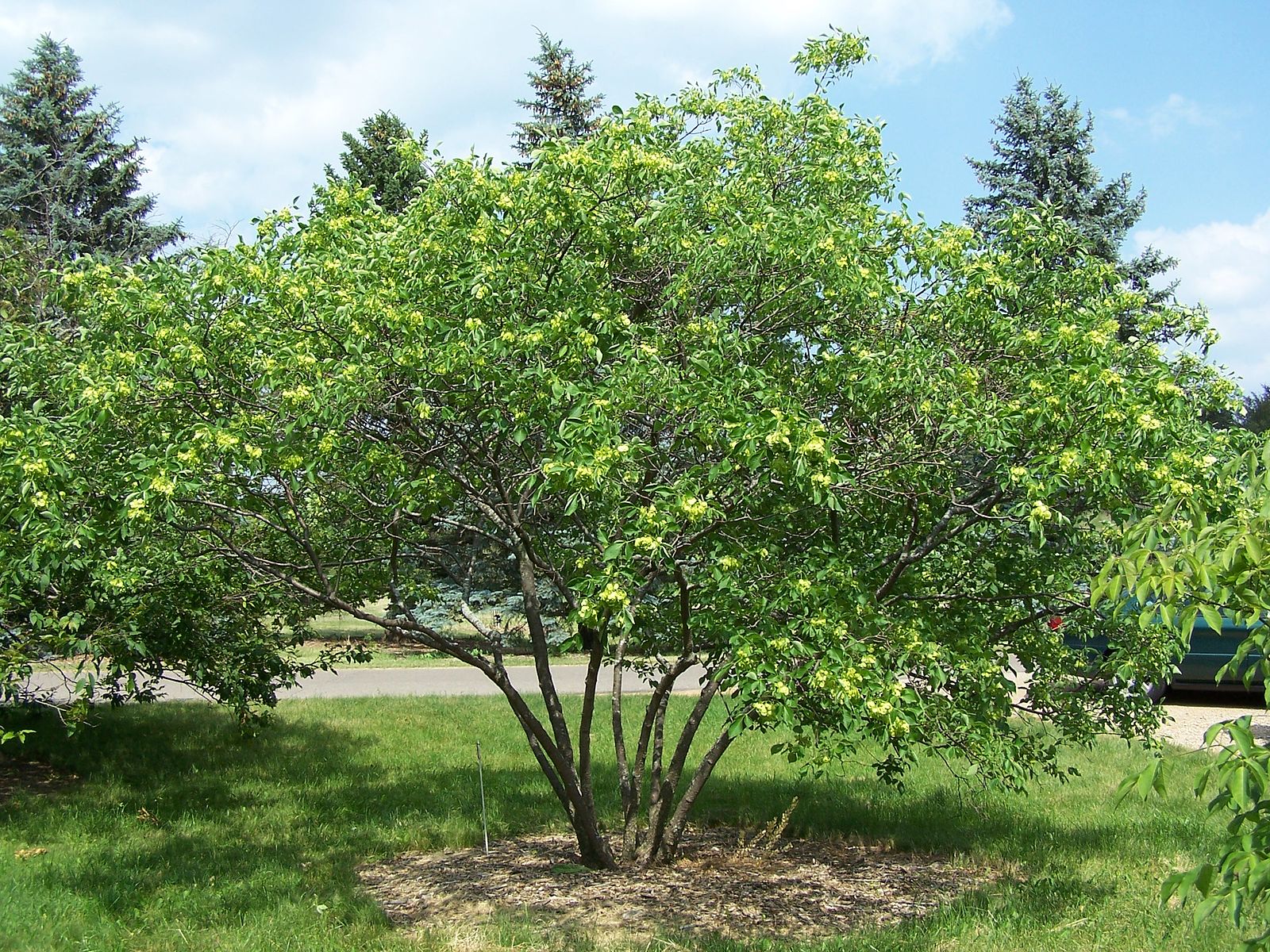 Hop Tree: An Ohio native tree with fragrant yellowish-green flowers. It is a host to the Giant Swallowtail butterfly. The seeds of the Hop Tree were once used as substitutes for hops. The tree also has medicinal uses. It grows in full sun to shade to about 20′ tall.