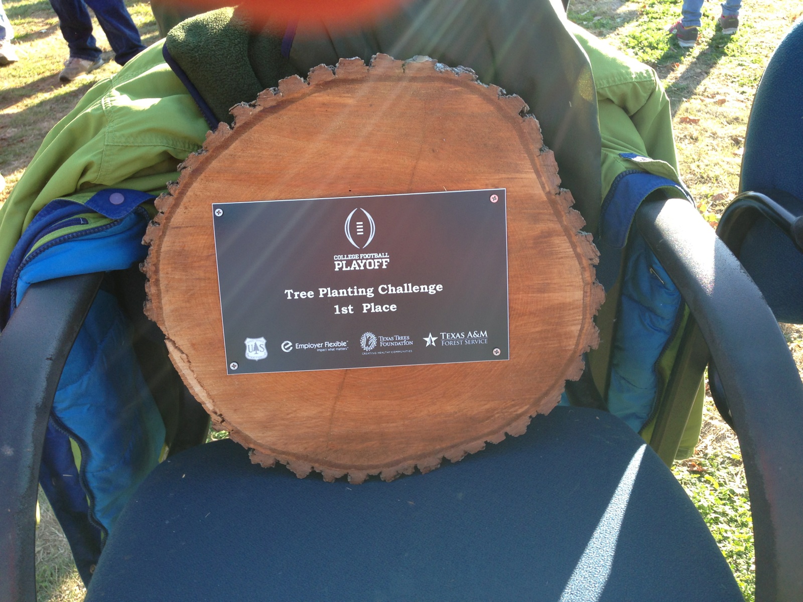 Well, Ohio State’s Chadwick Arboretum Tree Planting team took home a win of its own in Arlington, TX. Horticulturists from Ohio State, Oregon, Florida State, and Alabama competed to see which team could plant the most trees, with the Ohio State team winning first place. The tree planting, which took place at a new park, was part of The Playoff Green program, a group of sustainability projects developed around the college football playoffs. The program is meant to help offset the environmental impact in Arlington of hosting the college football championship.
