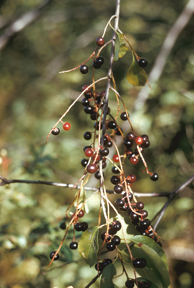 The rapid-growing black cherry tree is common throughout Ohio and is often found in open fields and previously harvested forests. This deciduous woodland tree is known for its beautiful, fine-grained heartwood which is commonly used for wood furniture, cabinetry, interior trim, and veneer. The largest native cherry tree, black cherry grows quickly due to its prolific fruit and seed distribution but is intolerant to competition for sunlight. It prefers deep, moist, well-drained soils of variable pH under full to partial sun conditions, but can also tolerate poor, dry soils with a reduced growth rate. Black cherry is susceptible to damage from the cherry scallop shell moth and the eastern tent caterpillar. The twigs, leaves, bark, and seeds of black cherry may poison livestock if ingested, however, deer are able to eat them without harm.