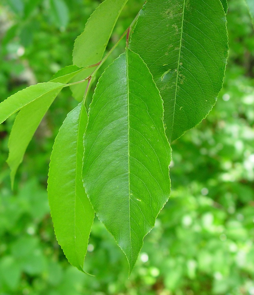 LEAF: Leaves are 2-5 inches long, lustrous, and dark green on top and pale below with pubescence on the midrib. They are alternate, simple, narrowly oval or oblong, and have fine serrations along their margins.