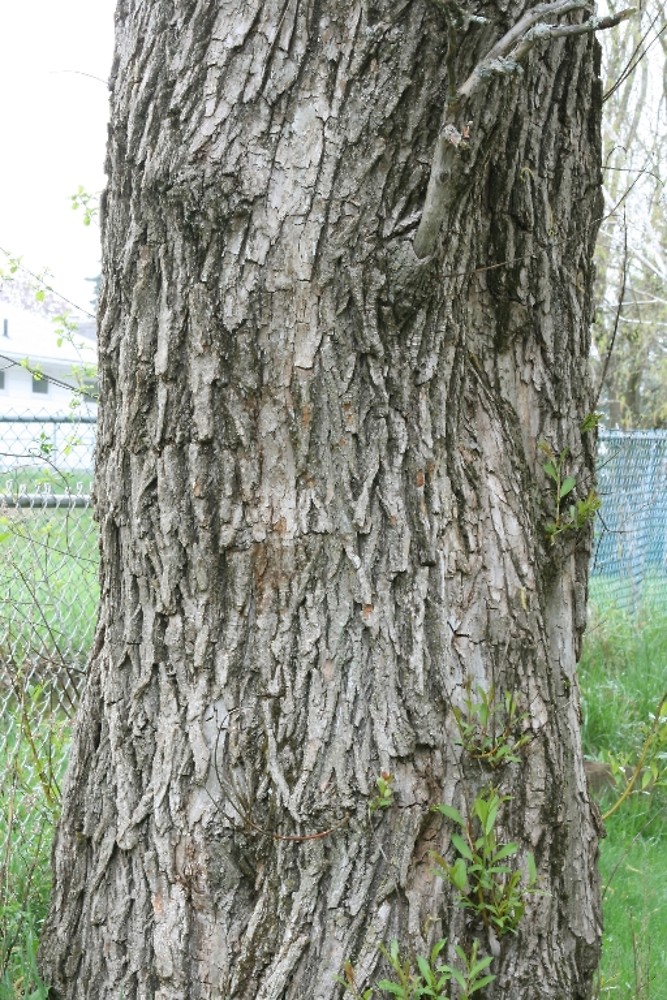 BARK: Thick, rough, blackish-brown, with scaly interlacing ridges and deep furrows.