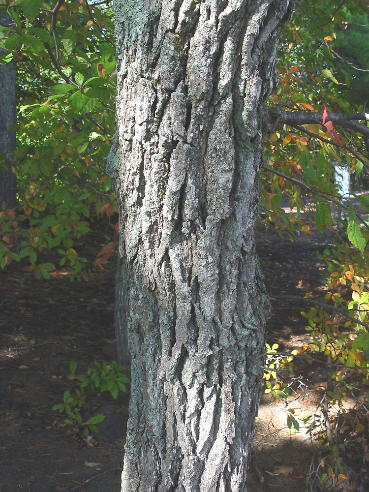 BARK: Immature bark is brown to gray-brown, with light furrows and a ridged to shingled appearance. Mature bark is medium gray, smooth to scaly, and has distinctly flat-topped blocks with deep crevices in-between and can fissure into quadrangular blocks called alligator bark on very old trunks.
