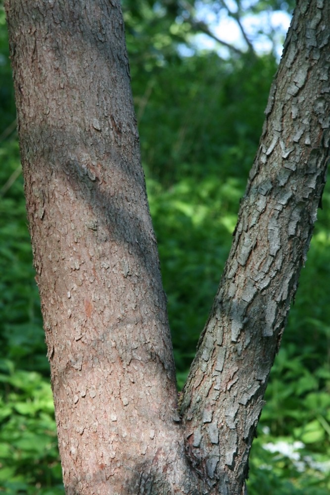 BARK: Dark brown to black with orange inner bark that can be visible. Smooth when young, but developing long, narrow plates that separate into scales as the tree matures.