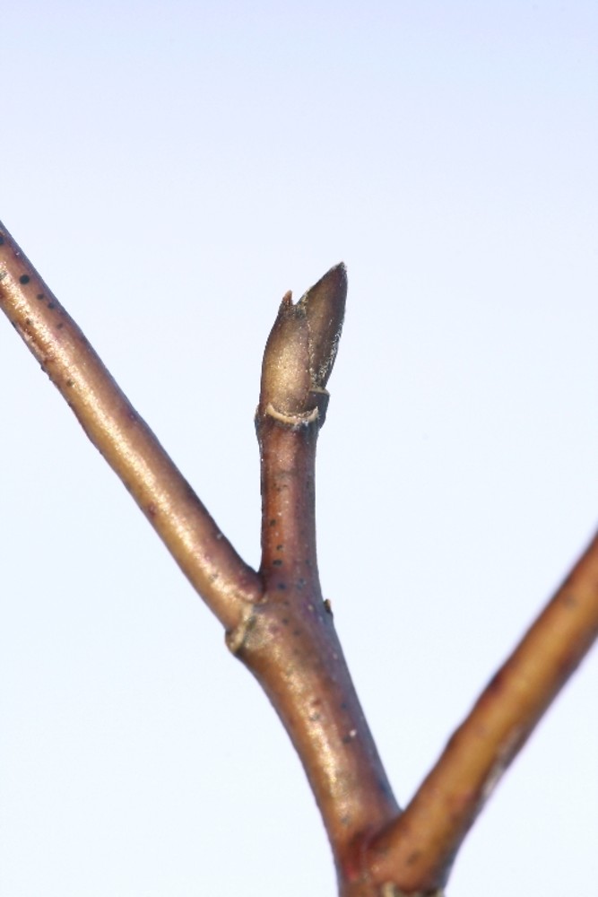 TWIGS AND BUDS: Twigs can present in a variety of hues in the winter such as brown, green, purple, and yellow. There are two scales on each winter bud, with edges that meet.