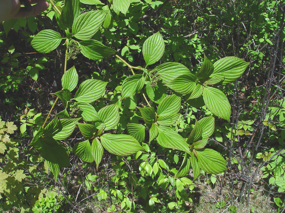 The pagoda dogwood is the only dogwood in the genus that has alternate leaves. It is a common understory shrub in forests on rich soils in New England. Candelabras of reddish-green fruits mature to black drupes which are eaten by a variety of birds as well as black bears. This species reproduces vegetatively by layering and suckering and can be propagated by cuttings.