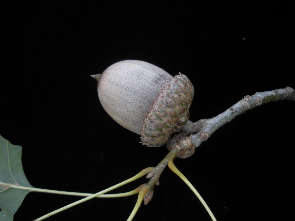 FRUIT OR SEED: Acorns are single or paired, ¾ to 1¼ inches long, oblong, and ovoid. The top of the acorn is covered with a shallow, bowl-shaped, scaly cap.