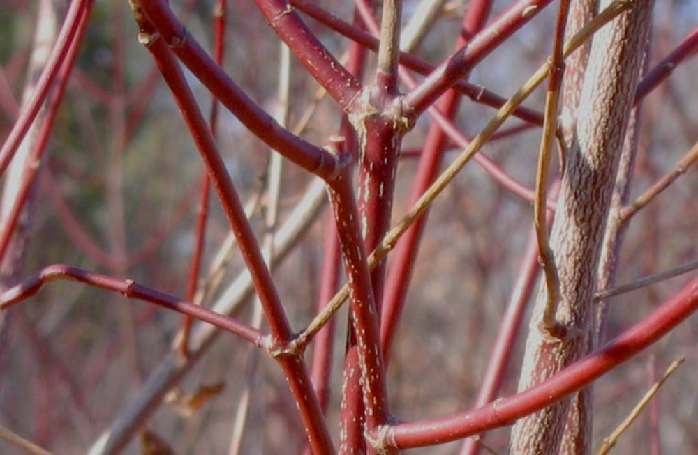 TWIGS AND BUDS: Winter twigs are thin and often reddish-purple to bronze, and in the case of silky dogwood may or may not have stalked buds.